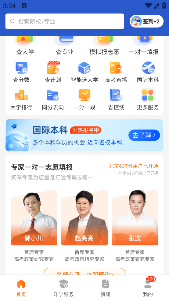 5、除了智能推荐以外软件首页还有1v1的首席专家为您量身定做专属志愿