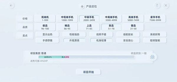 2、初期建议选择“中端”或者“中低端”,相对比较保险。员工能力和科技上去之后就可以尝试中高端以上的手机了。