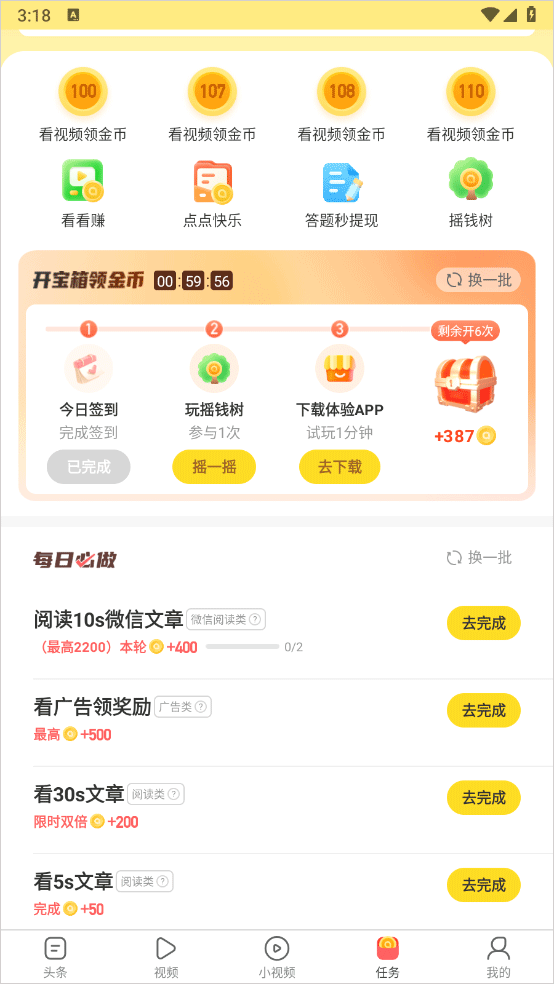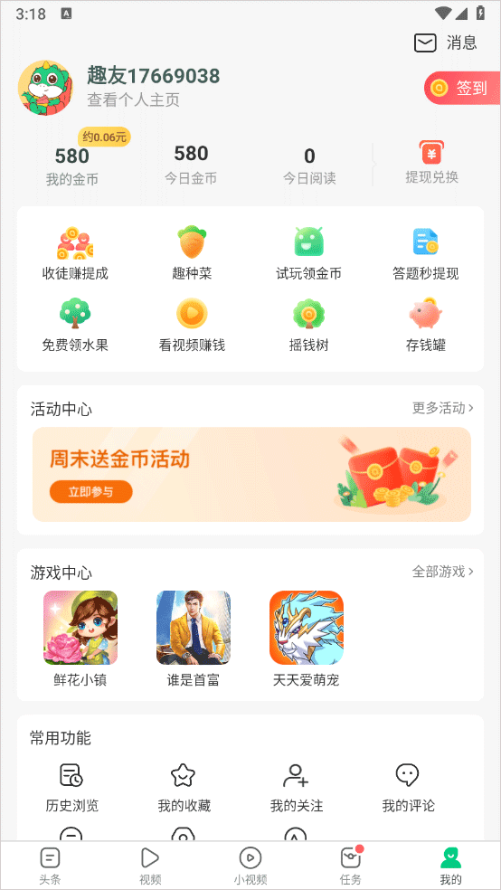 4、完成任务即可获取金币