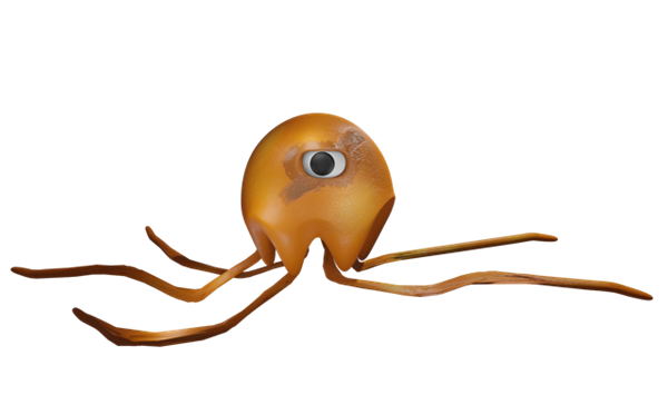 毒刺弗林是一只橙色水母,一只眼睛位于钟形头部的中间,与6根可伸缩的触手相连。他的四根触手向下,另外两根则以友好的姿势举起在他的头部两侧。