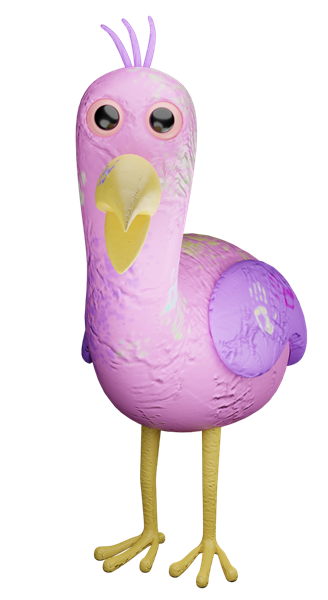 奥皮拉鸟是一种粉红色的火烈鸟状鸟,身上布满了手印,翅膀和褶边的头羽上出现了第二种紫色。奥皮拉·伯德的眼睛布满血丝,锋利的喙是黄色的,还有她用来参加班班追逐场景/鸟类比赛的强壮双腿。