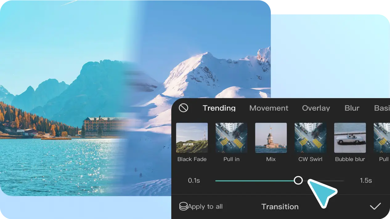 无需复杂的编辑。选择任何你喜欢的过渡来帮助你的故事前进。