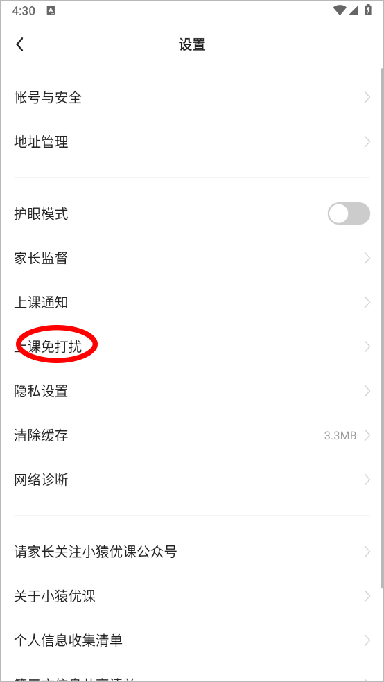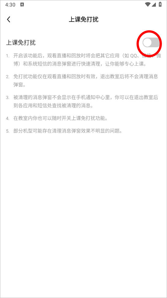 4、开启按钮即可开启上课免打扰沉浸式学习