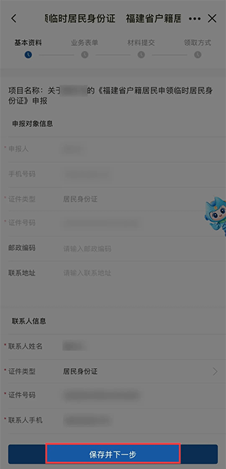 4、进行人脸识别,确认并填写基本资料,点击【保存并下一步】。