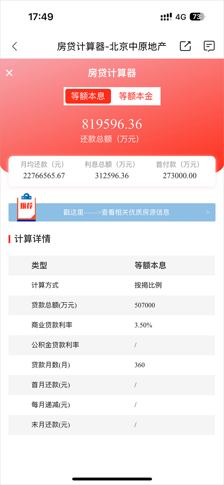 2、房贷计算器:支持公积金贷款、商业贷款和组合贷款三种不同的贷款方式,方便您随时计算“月均还款”、“还款总额”和“支付利息”。