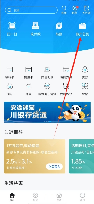 1、下载并安装本站提供的四川银行app客户端,打开进入首页,并点击下方的生活