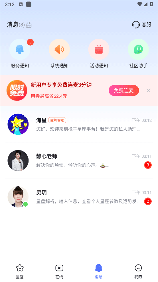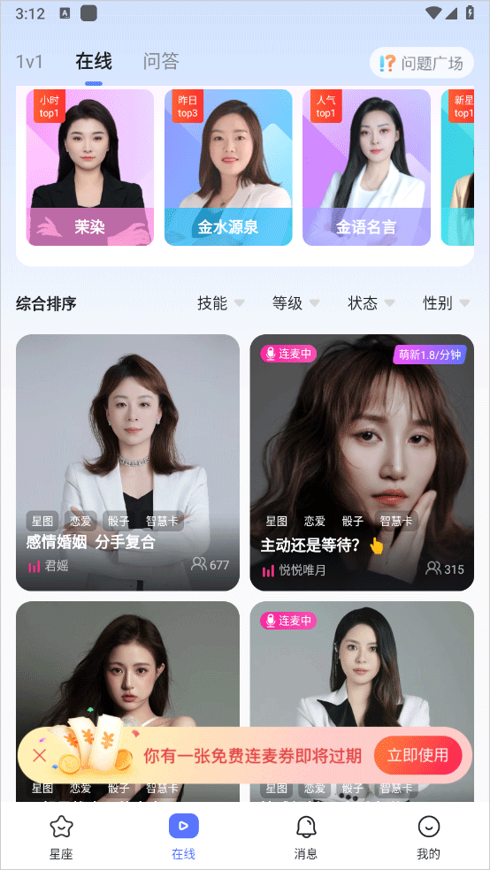 2、专业的占星师都在这里为你提供实时帮助,每天可以在这里观看免费的直播。