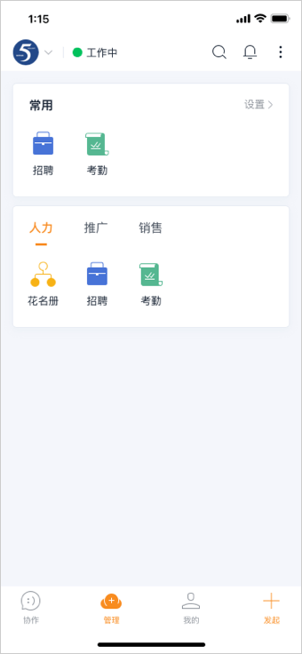 包括组织架构、招聘和考勤,组织架构一目了然,高效筛选人才,全方位管理内外考勤