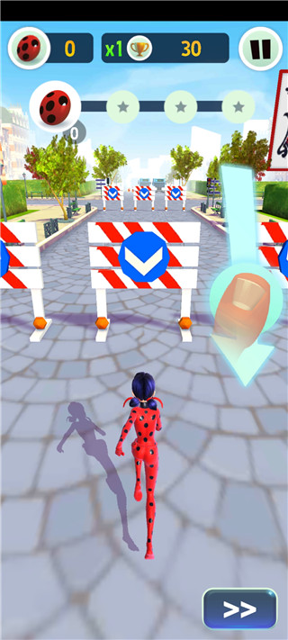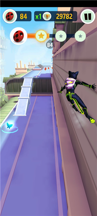 Miraculous瓢虫少女手游是一款根据国外热门动画片改编而来的休闲跑酷游戏,游戏的核心玩法是跑酷体验,玩家将在游戏中扮演超级英雄瓢虫和黑猫,以跑酷的形式在巴黎抓捕坏人,避免城市遭到破坏。游戏中,玩家需要控制角色进行前冲,躲避路途中的陷阱和障碍,同时还需要克服困难,使用道具帮助自己走得更远,感兴趣的话快来下载试玩吧。