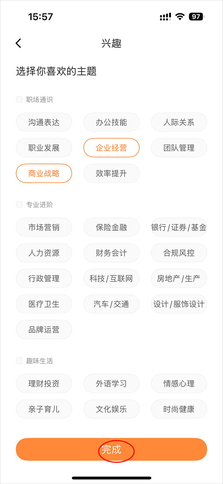 4、选择偏好点击完成即可