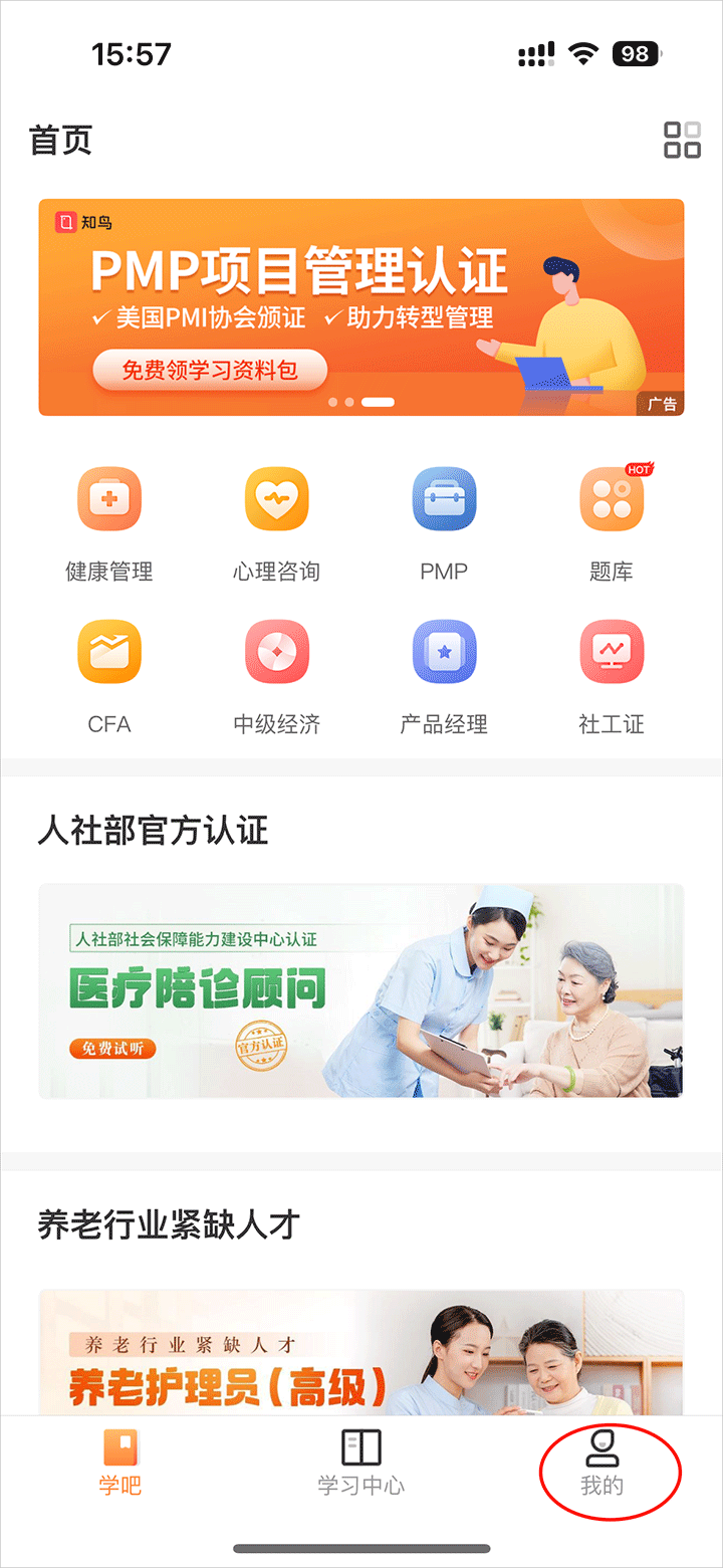 2、进入我的页面