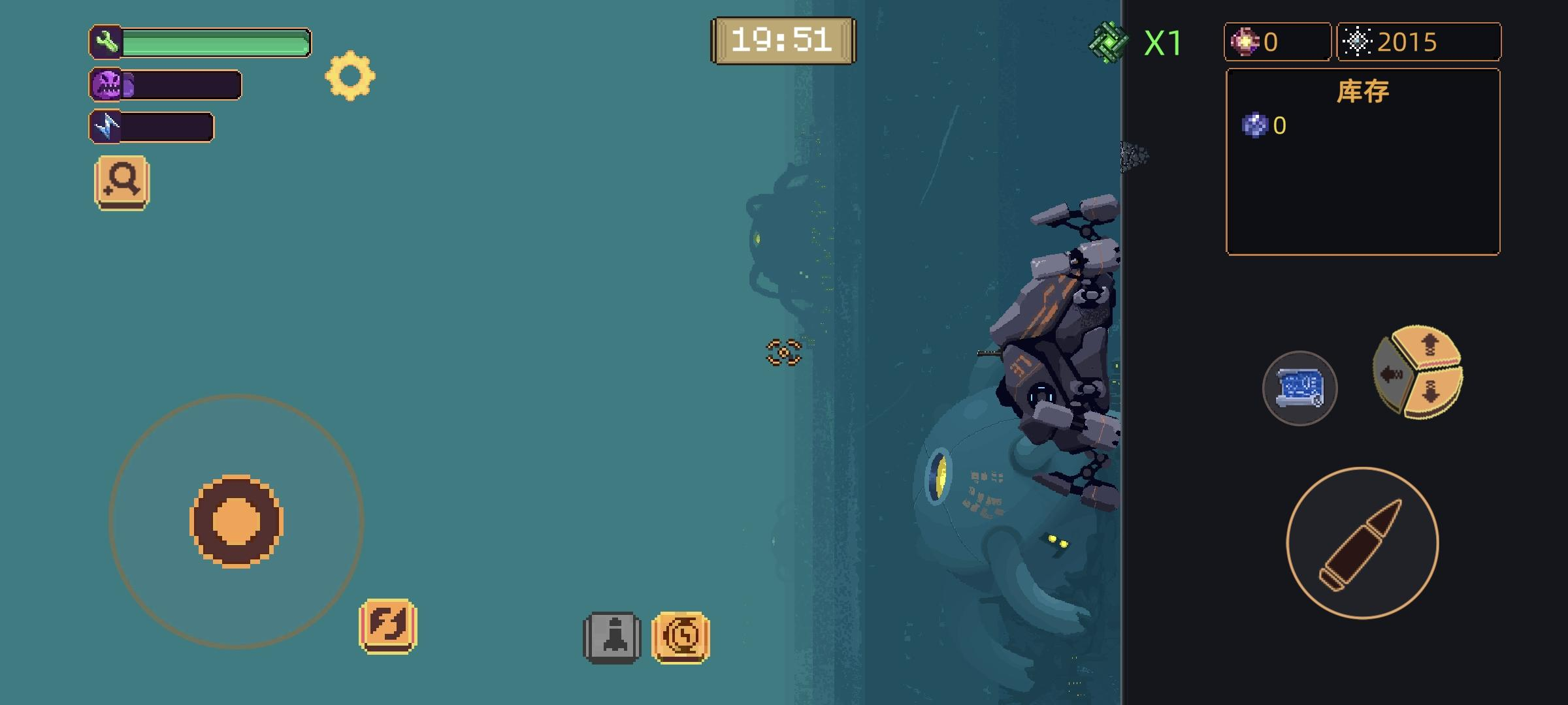 腿,跑起来才是这个游戏的开始,因为游戏地图自上而下一共7层,不同的层有不同的特殊矿产,玩家出生在中间,想要在有限的时间内通关是一定会上下来回跑的,另外,移速升满之后可以非常简单的躲避boss的触手攻击(这也就意味着 上跳 和 下跳 这两个升级变得可有可无)。