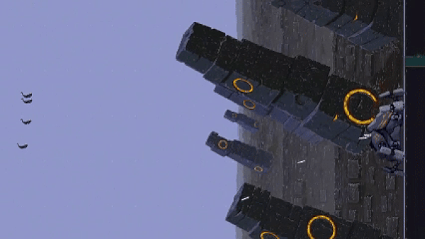至于打boss,很明显我们需要攻击他肚子上那个蓝色小球,但是初始机枪抖的一批还得兼顾清怪,所以打boss其实要靠家里升级的那个按1键使用的技能导弹 ,导弹会优先锁定高威胁目标。
