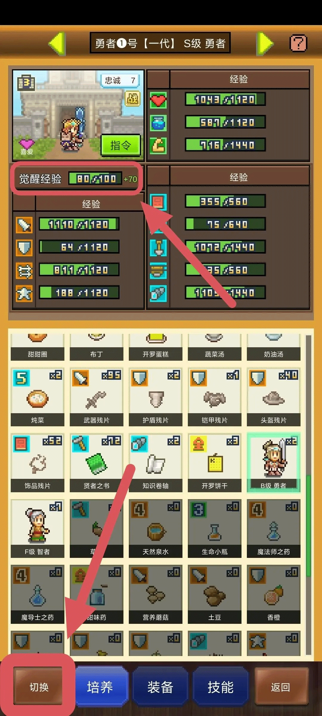培养页面的左下角切换可查看详细觉醒经验