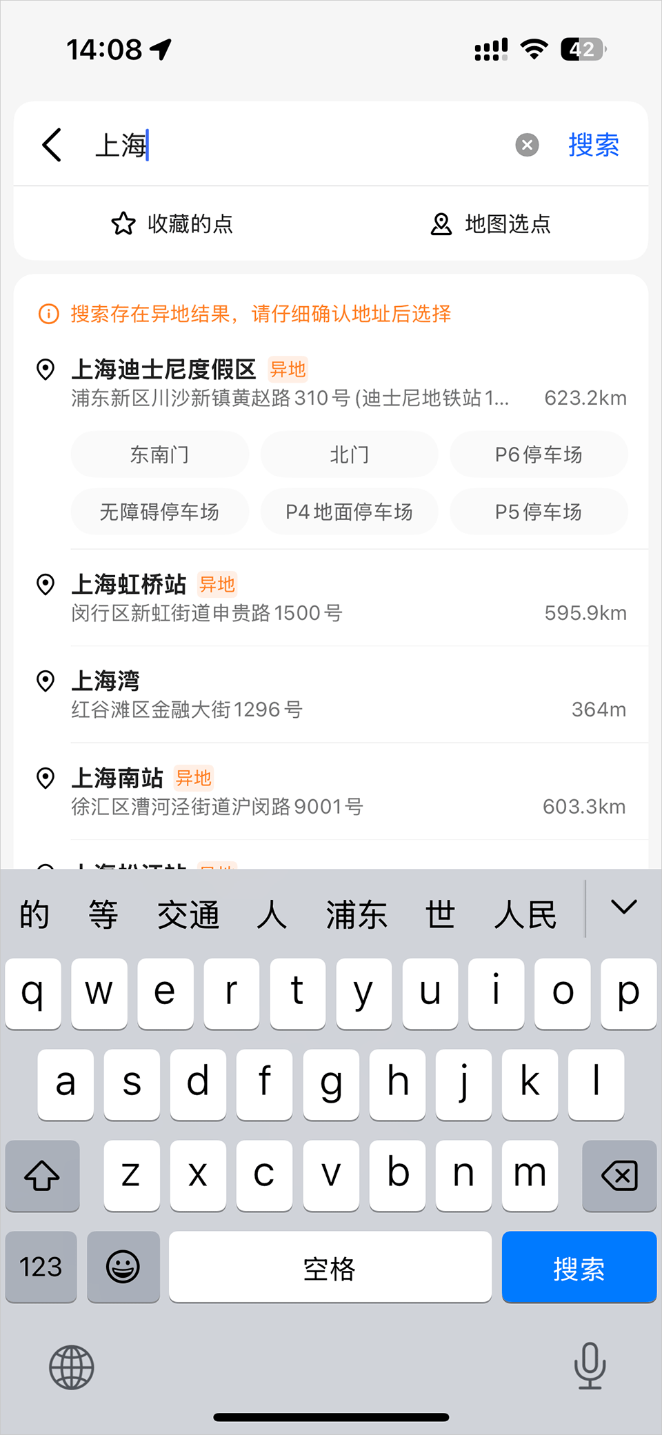 2、进入如图界面,在搜索栏中查询想要定位的地名,如上海迪士尼,找到需要定位的位置,点击即可;