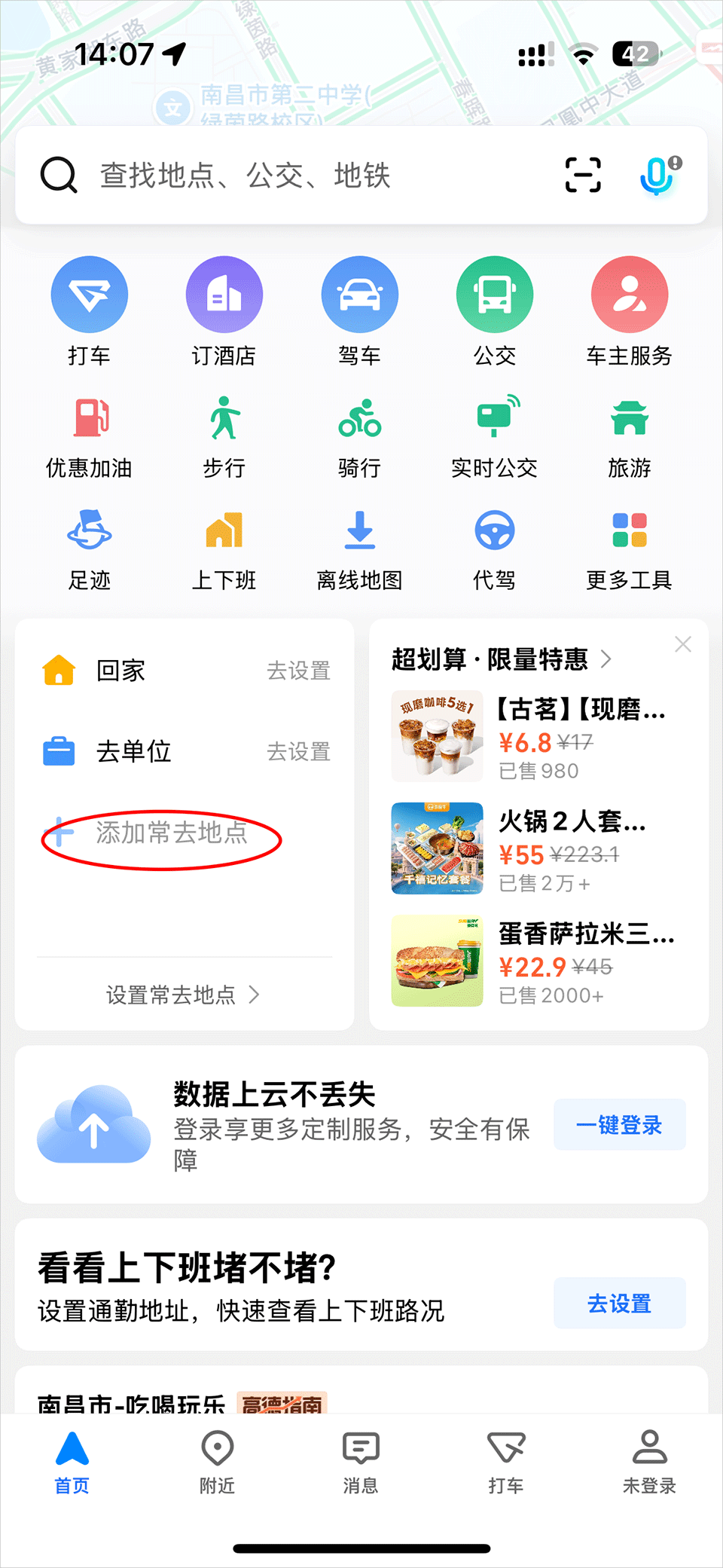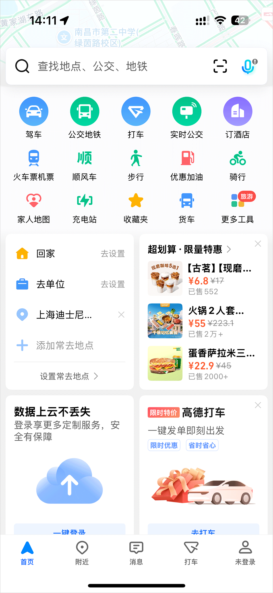 -上高德搜寻「充电地图」/「加油站」,寻找附近电动车充电及油车加油设施,设施多,性价比强。