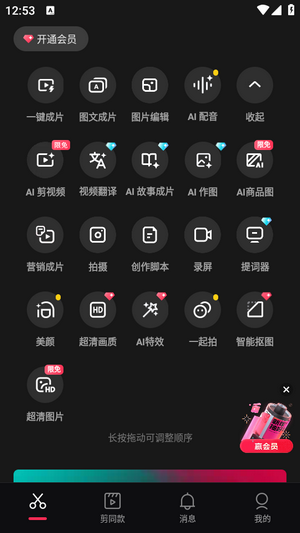 4、软件还提供了许多功能,这些功能可以帮助大家更好的创作视频,快来试试看吧。