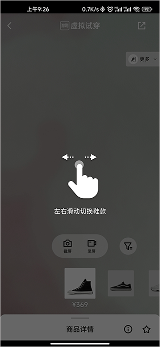3、开虚拟试穿功能以后,向左滑动列表,选择一双试穿球鞋。