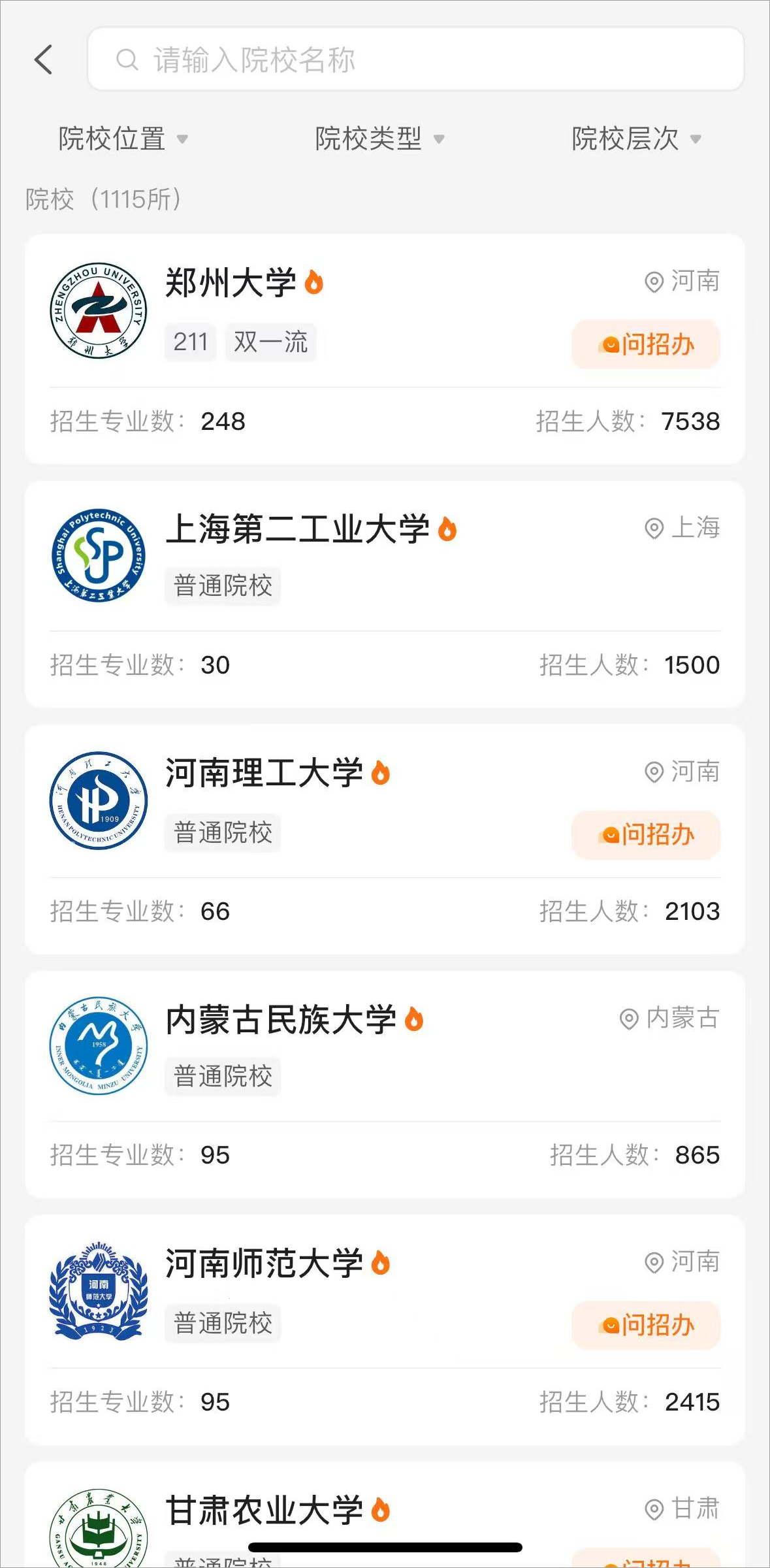 4、此外,点击首页的“查大学”可以查看各个学校的招生人数和其他考试数据
