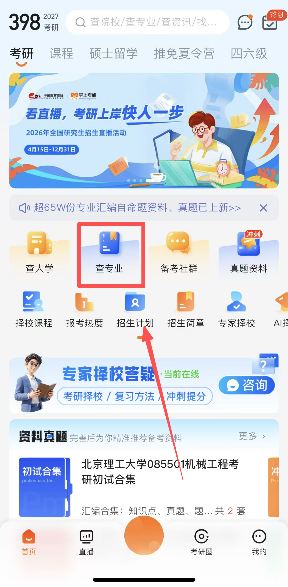 1、打开app点击首页的“查专业”