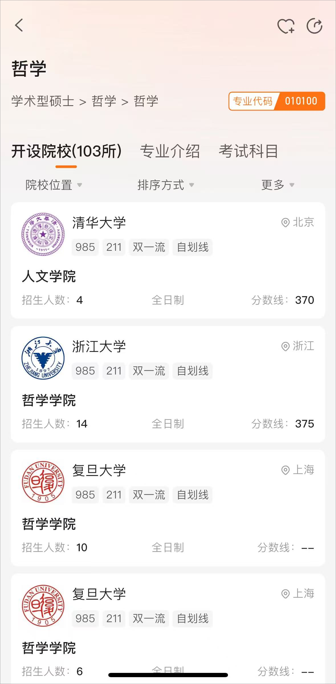 3、点击进入后即可查看专业不同学校的分数线