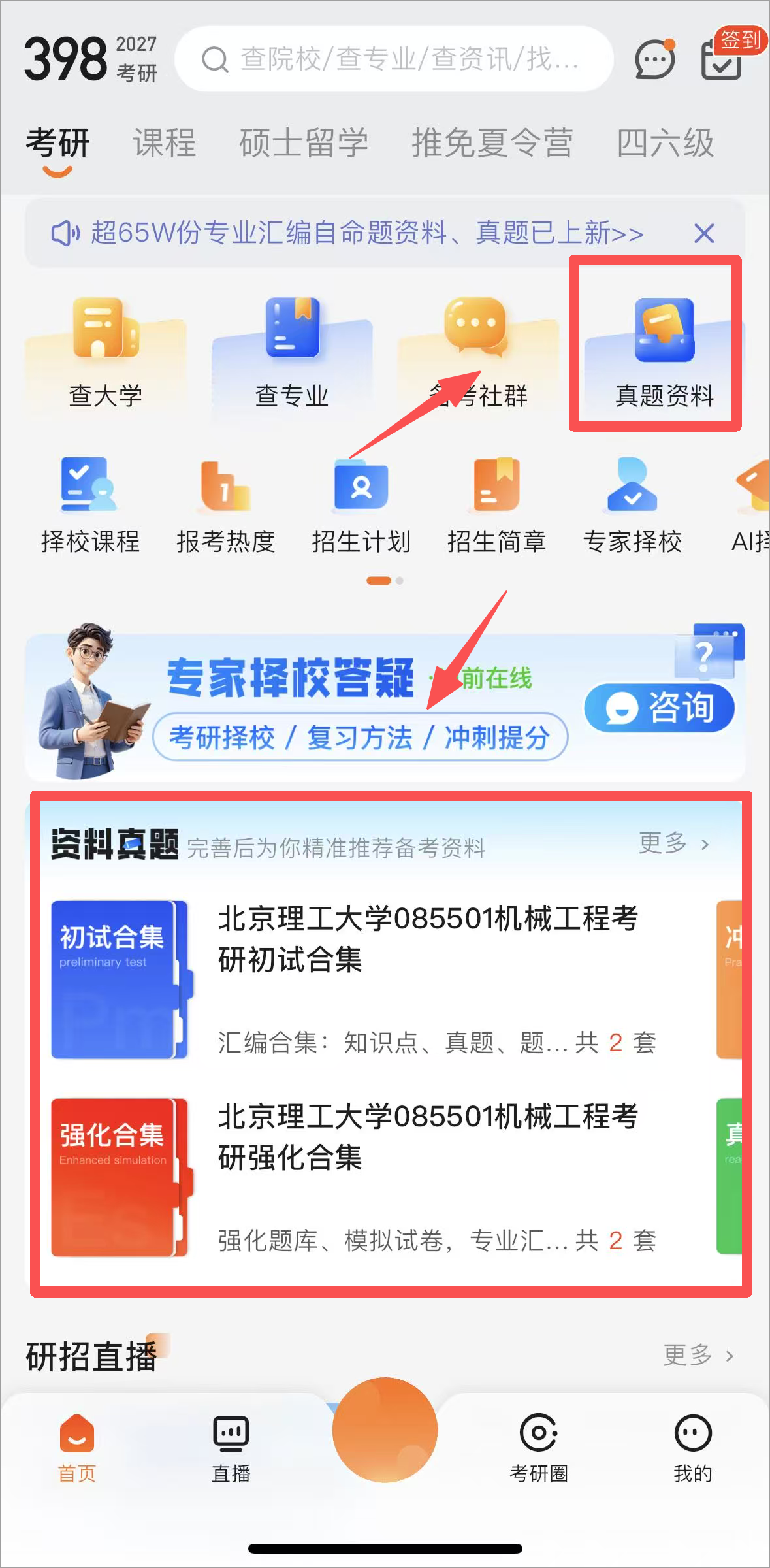 2、考研资料真题:60万+院校自命题备考资料和考试真题,汇集各院校往届高分学长学姐复习资料,精心汇编自命题考试的核心内容。告别繁琐查找,一键锁定资料。