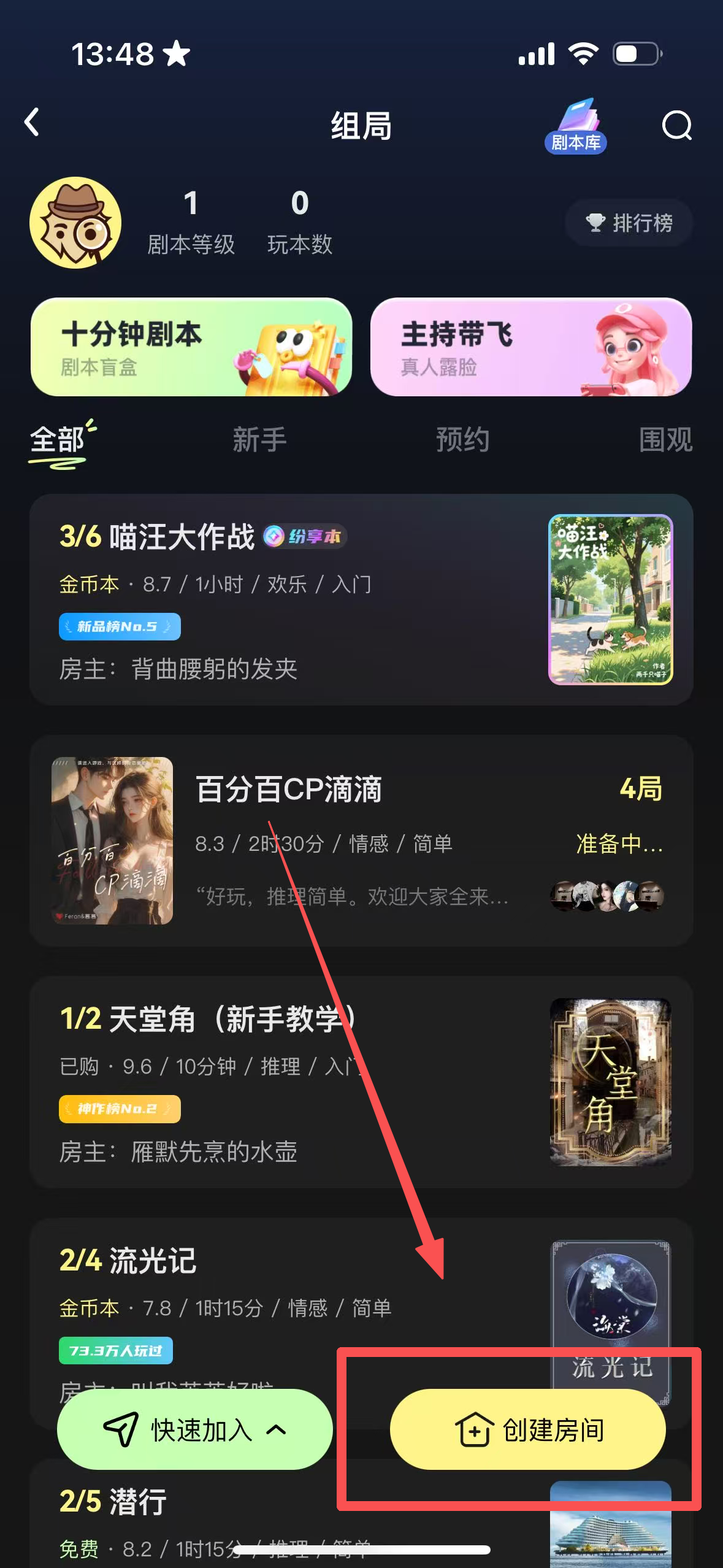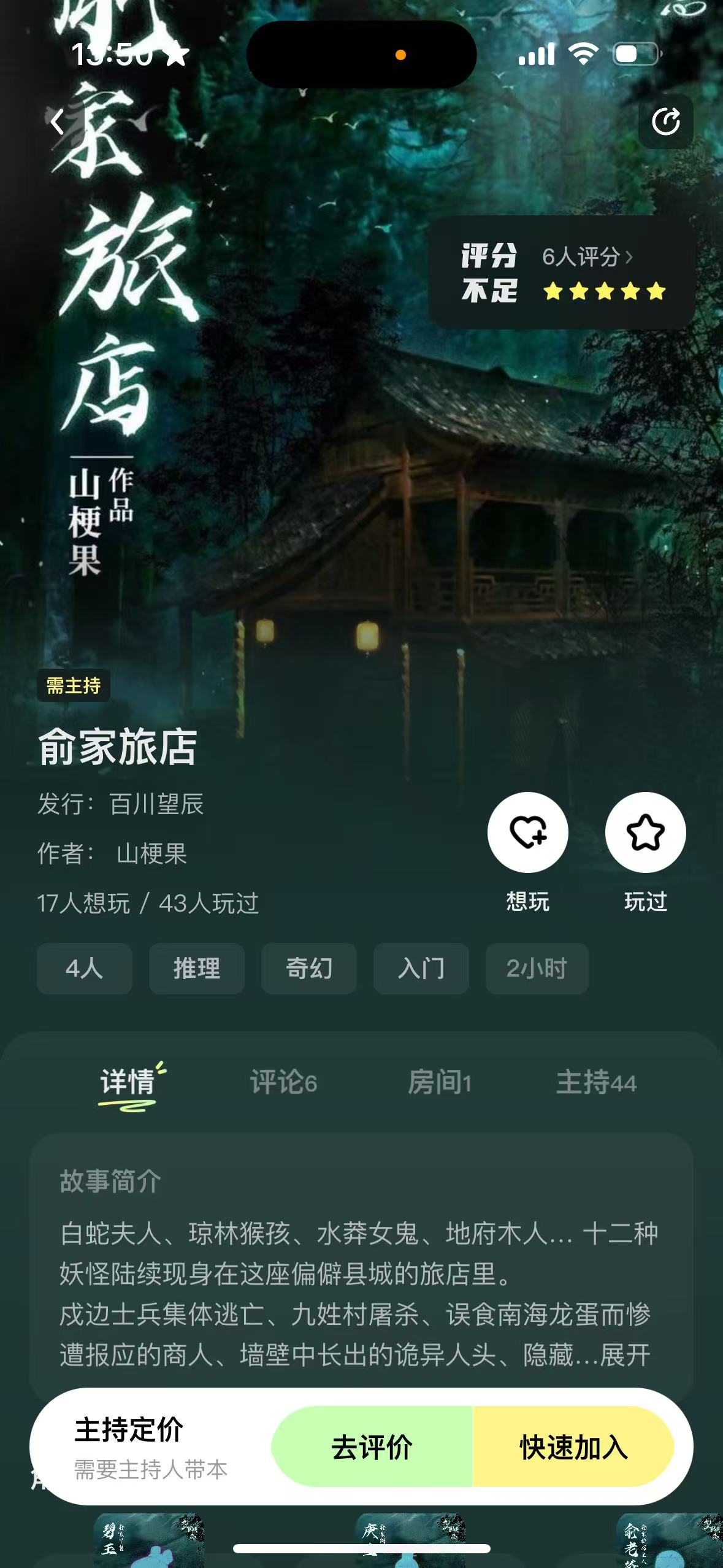 3、点击剧本即可进入详情页查看剧本的故事简介,选择好剧本后点击右下角的快速加入即可进入剧本当主持