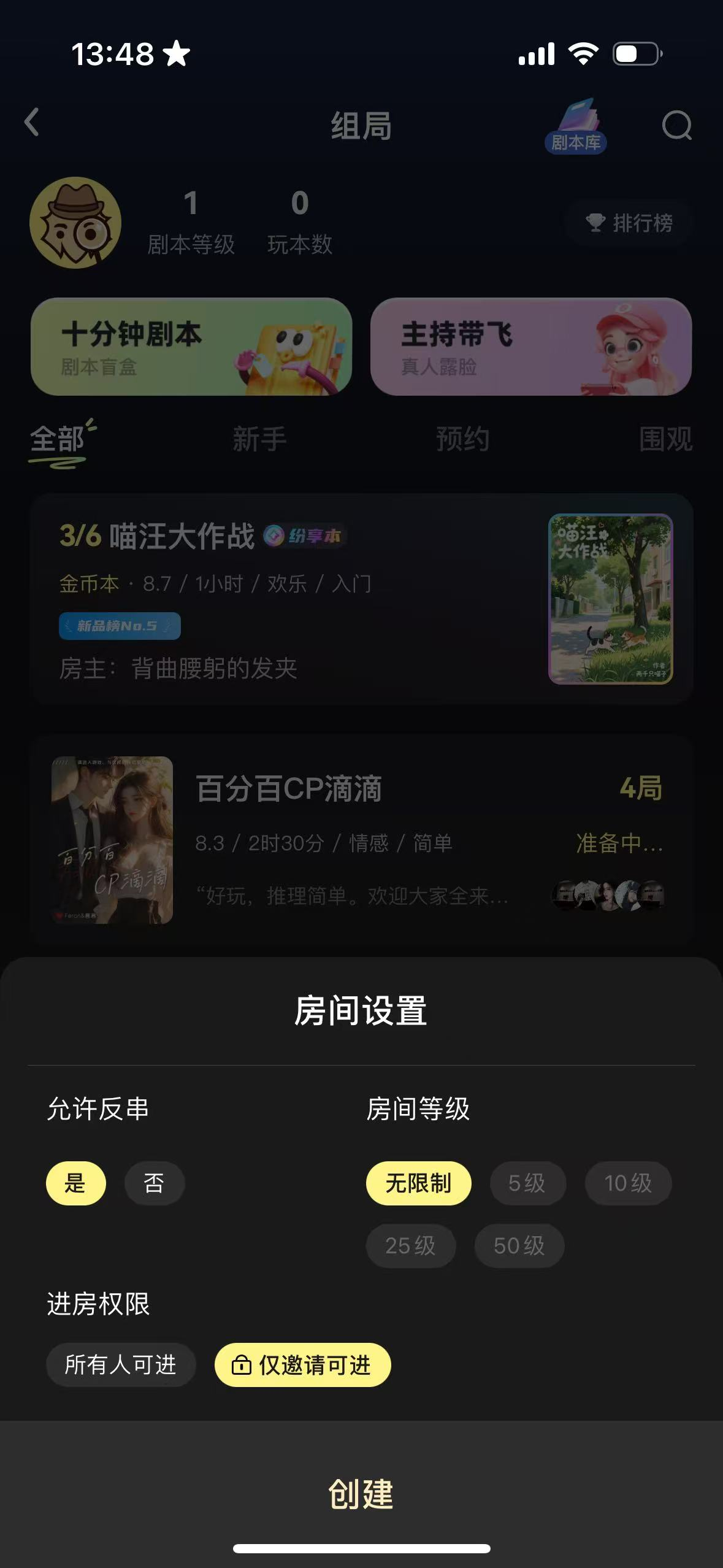 2、海量剧本:快速匹配随时随地,任性开演!还有建房模式,邀请好友一起开车吧!