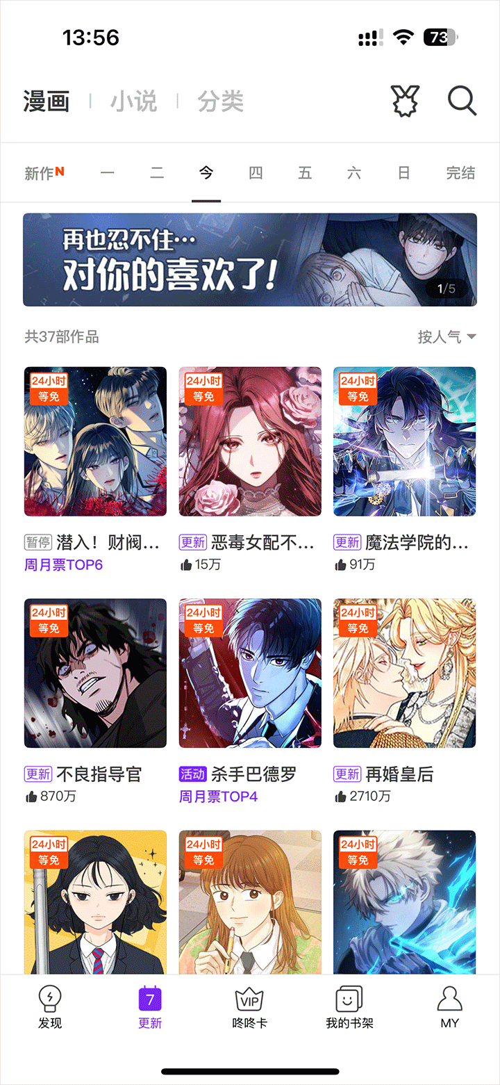 2、在更新页面可以发现最新更新作品