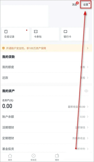 1、进入度小满金融APP,依次点击“我-设置”。