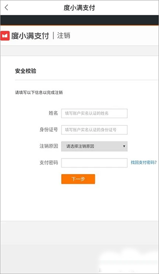10、输入身份信息和注销原因以及支付密码,然后点击“下一步”。