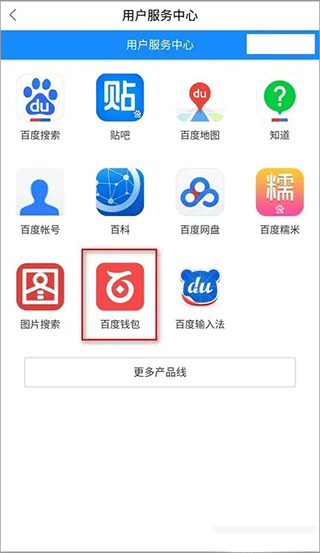 6、在“用户服务中心”点击“百度钱包”。