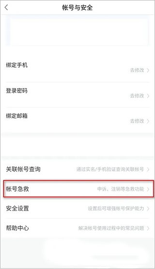 3、找到并点击进入“账号急救”。