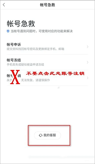 4、点击“我的客服”。注意不要点击此处的“账号注销”。