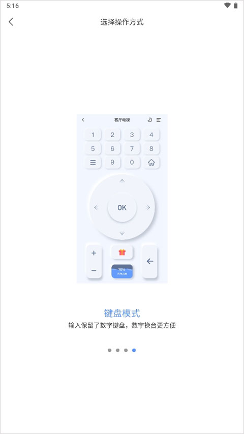 7、键盘模式中保留了数字键盘,让数字换台更加方便,用户想要什么模式,只需点击想要的蓝色模式字体即可切换相应模式
