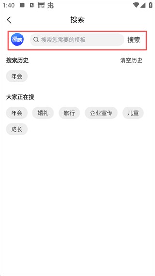 2、在搜索栏输入您需要的主题关键词,如【年会】。